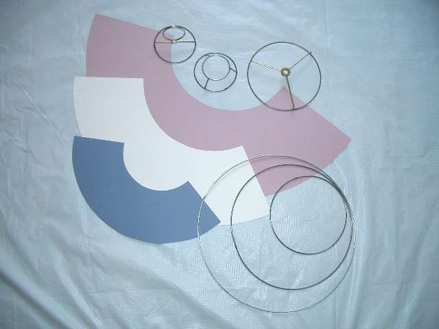Many different types of frames are available. Most lampshades are designed with a top and bottom ring, with a top ring attachment of your choice. Below is shown a small sample of frame shapes, rings available, and pre drafted arcs.